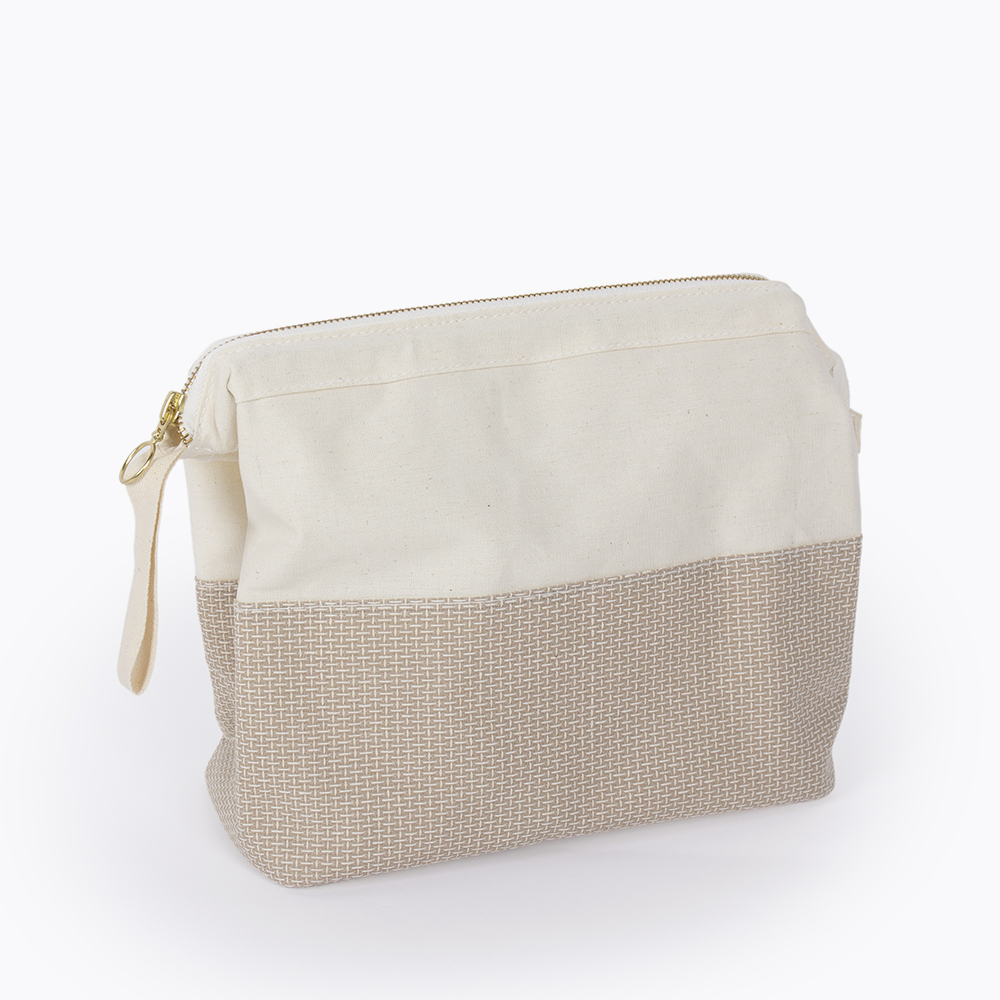 La trousse de toilette ALBA incarne une vision épurée et fonctionnelle de l’accessoire de voyage. Confectionnée dans un textile clair au toucher naturel, elle associe élégance discrète et praticité. Son zip métallique YKK finition dorée assure une ouverture fluide et durable, tandis que l’intérieur est organisé grâce à des compartiments en maille coton pour maintenir vos essentiels en place. Compacte et bien structurée, ALBA accompagne aussi bien les déplacements que l’usage quotidien dans la salle de bain.