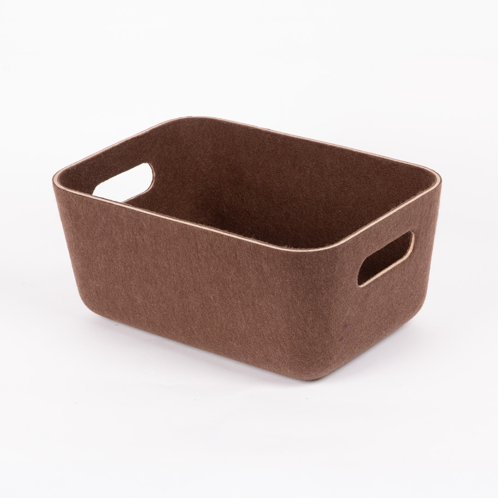 Le panier de rangement CADIX GM offre une capacité généreuse pour organiser textiles, accessoires ou linge du quotidien. Fabriqué en feutre polyester épais 1300 g/m², il combine solidité et légèreté pour une utilisation pratique. Ses poignées intégrées facilitent le transport tandis que sa structure empilable optimise l’espace de rangement. Disponible en prune ou chocolat, ce grand panier textile apporte une solution élégante pour structurer les espaces de la maison.