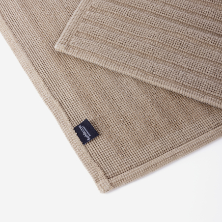 Tapis de bain Monceau taupe 50x70 cm, coton certifié OEKO-TEX, densité 1700 g/m². Dos antidérapant, entretien facile, design élégant fabriqué au Portugal.